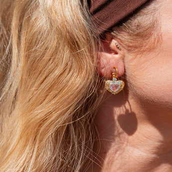 đź©· Boucles d’oreilles HEART – CrĂ©oles dorĂ©es avec la pampille coeur vintageÂ