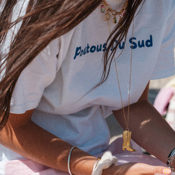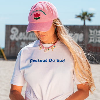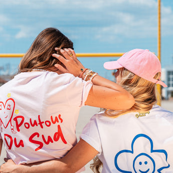 • Imprimé au dos : grande fleur smiley bleue façon+ écriture "Poutous du Sud" 🌸