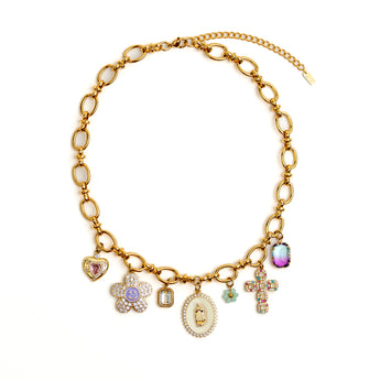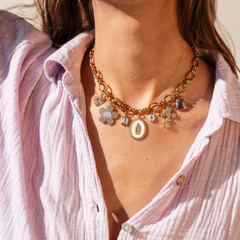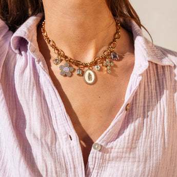 Il est le collier hyper stylé de cet été ! Mamy te présente le MAMY BERNADETTE, un collier qui va sublimer tes looks d'été avec douceur et fraîcheur. Avec ses jolies tonalités violines, blanches et roses, il apporte une touche colorée à toutes tes tenues ☀️