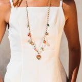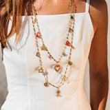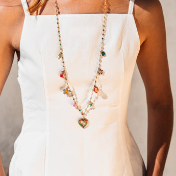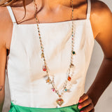 Voici le MAMY FRIDA, un sautoir (collier long) avec full pampilles dorées et colorées. Parfait pour ajouter du flow à toutes tes tenues d’été. Ce bijou est facile à porter, seul ou avec d’autres colliers, et ça on adore !